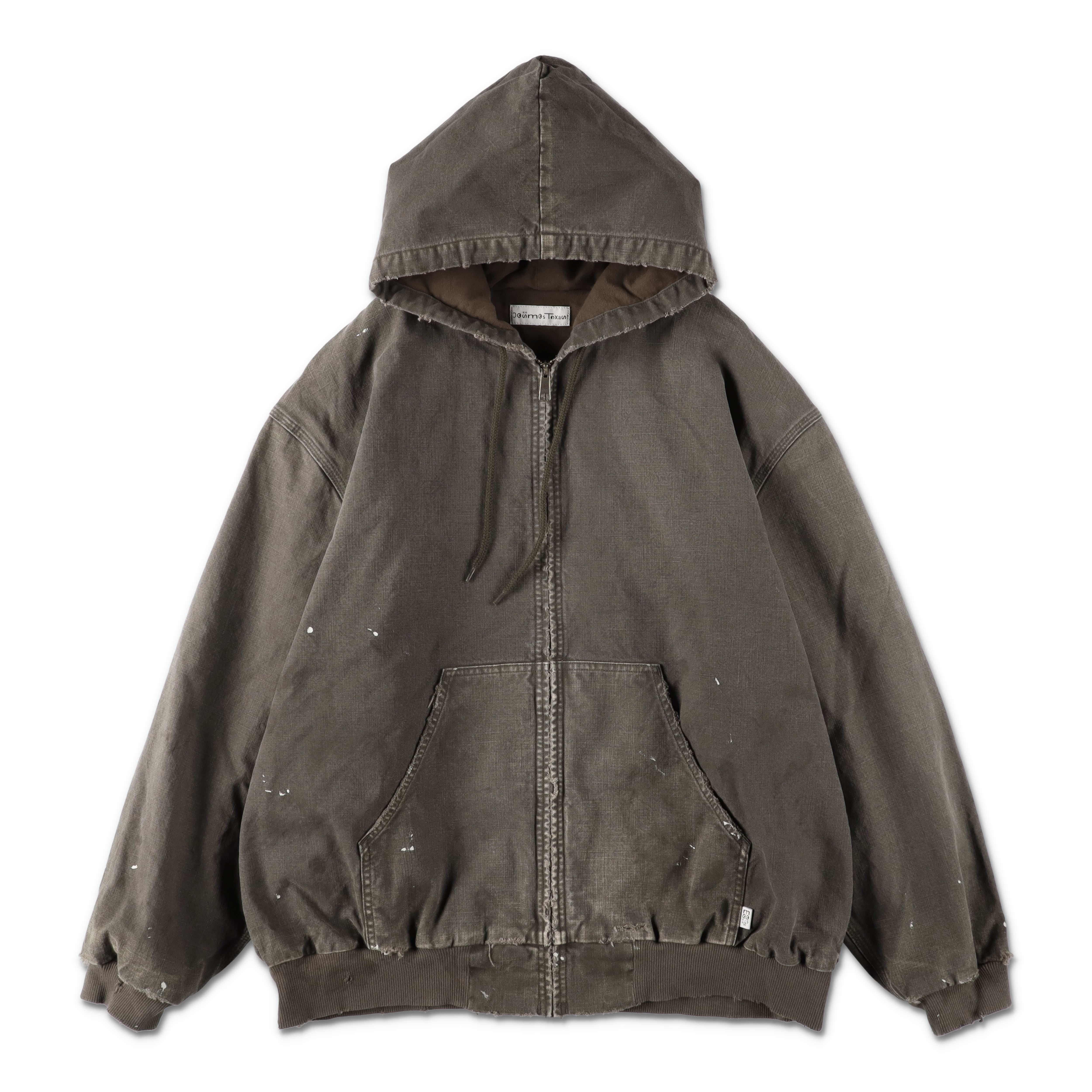 ダメージ加工を施したCTオリジナルシルエットのオーバーサイズワークフーディジャケット。