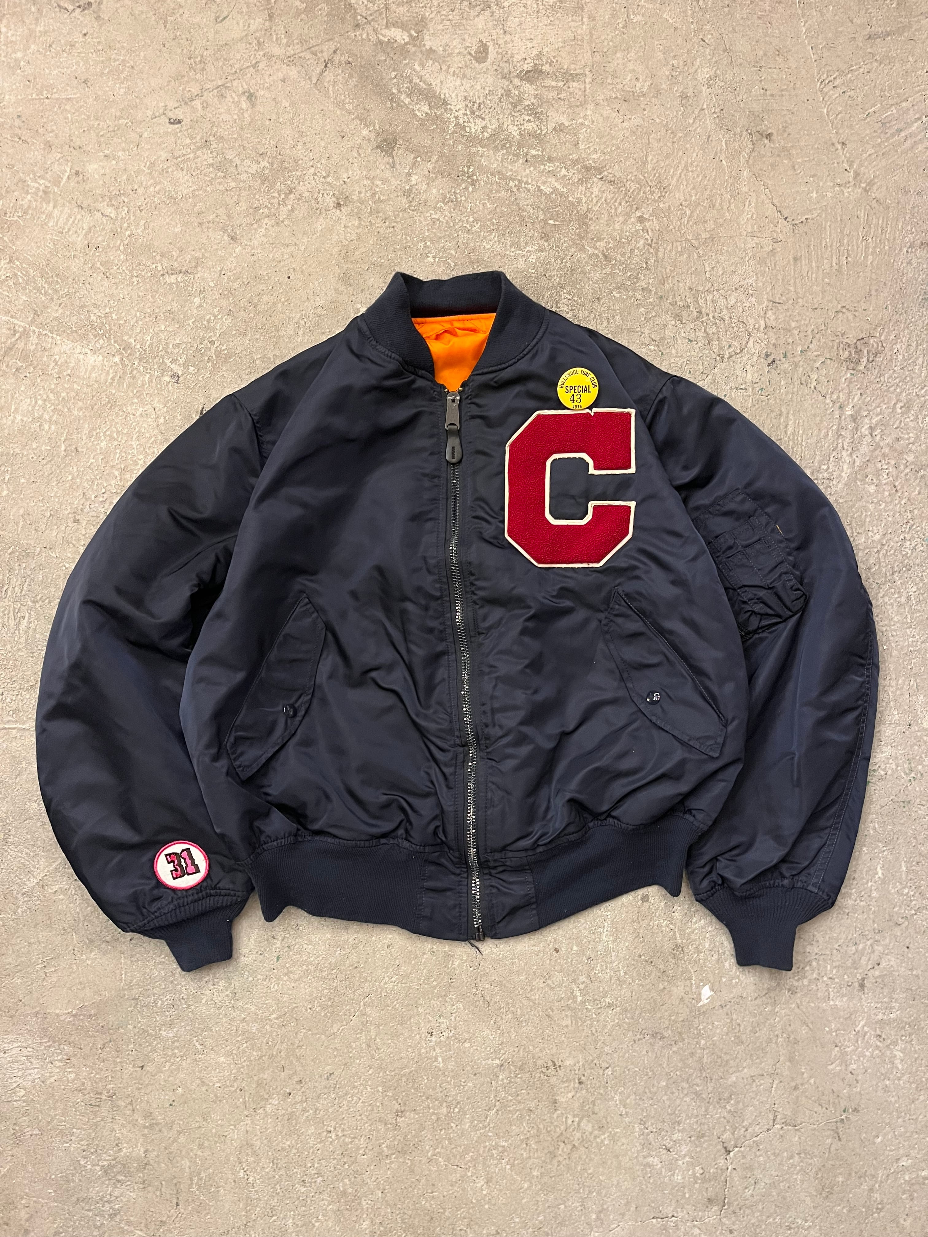 MADE IN USAのMA-1にvintageのシニールパッチと缶バッジでカスタムしました。特にシニールパッチはアメリカでも希少価値が上がってきているアイテムです。