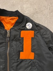 MADE IN USAのMA-1にvintageのシニールパッチと缶バッジでカスタムしました。特にシニールパッチはアメリカでも希少価値が上がってきているアイテムです。