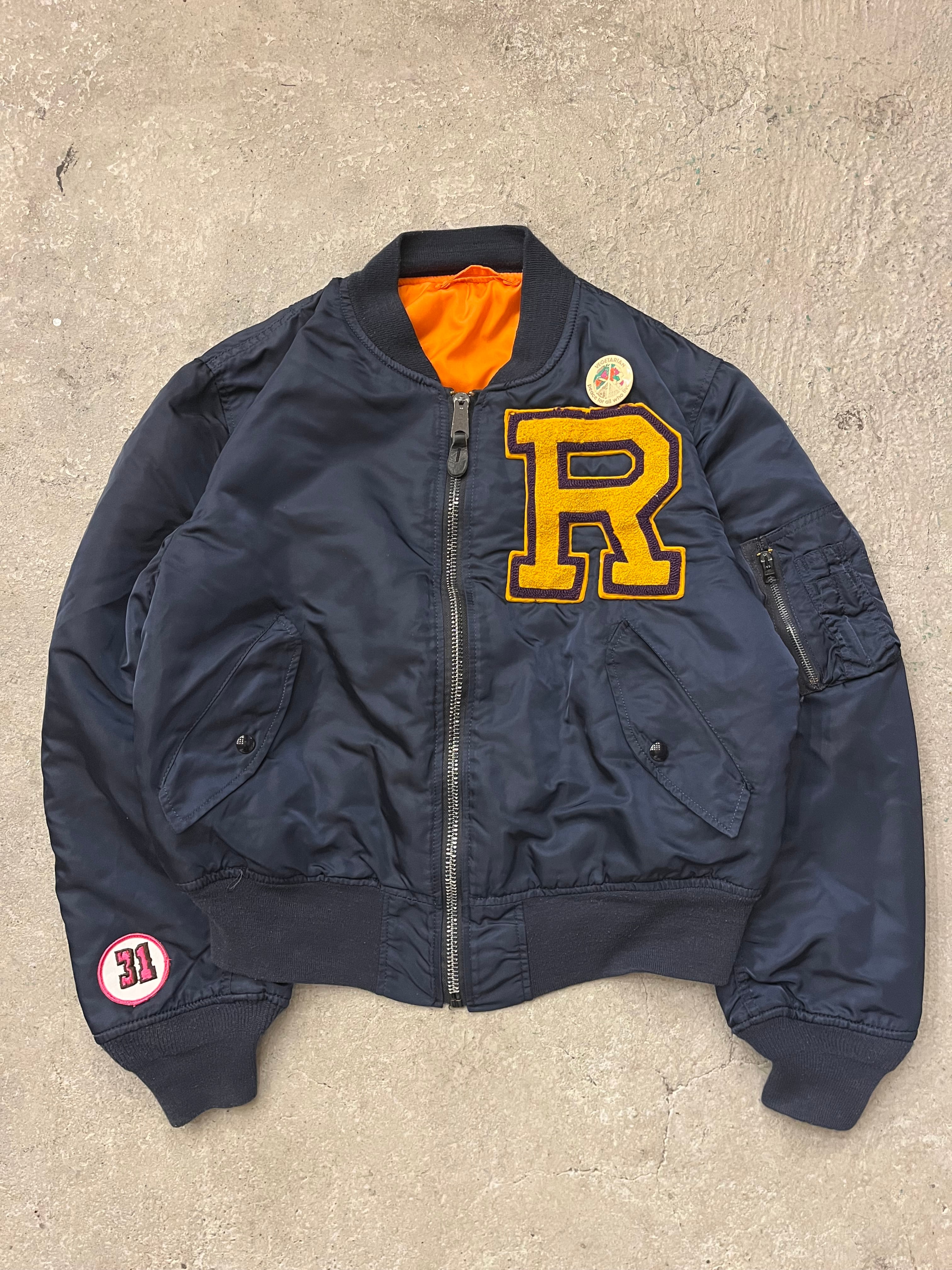 MADE IN USAのMA-1にvintageのシニールパッチと缶バッジでカスタムしました。特にシニールパッチはアメリカでも希少価値が上がってきているアイテムです。