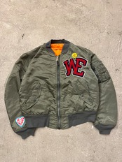 MADE IN USAのMA-1にvintageのシニールパッチと缶バッジでカスタムしました。特にシニールパッチはアメリカでも希少価値が上がってきているアイテムです。