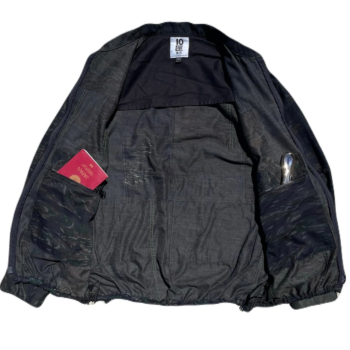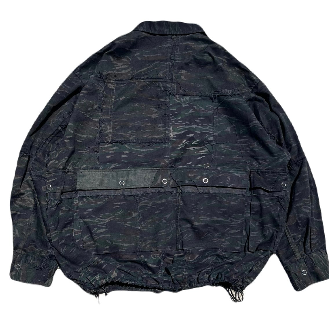 その迷彩生地を全て解体し、パッチワークでジャケットに再構築しました。