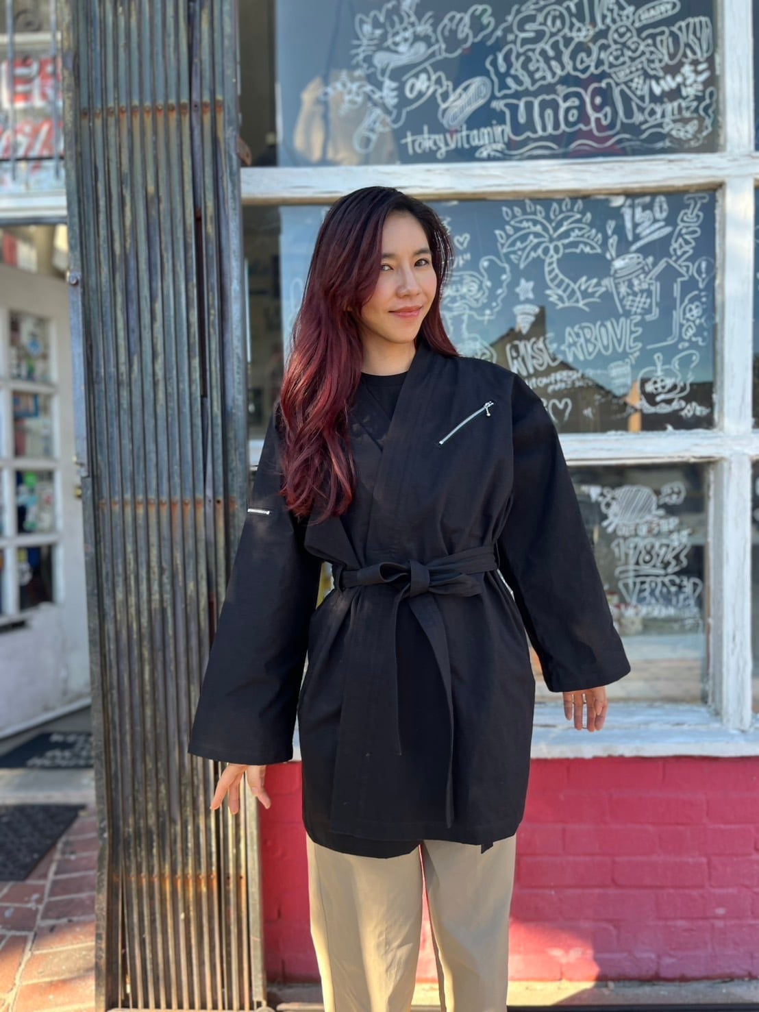 ロング丈だからインナーを気にせず羽織れる。