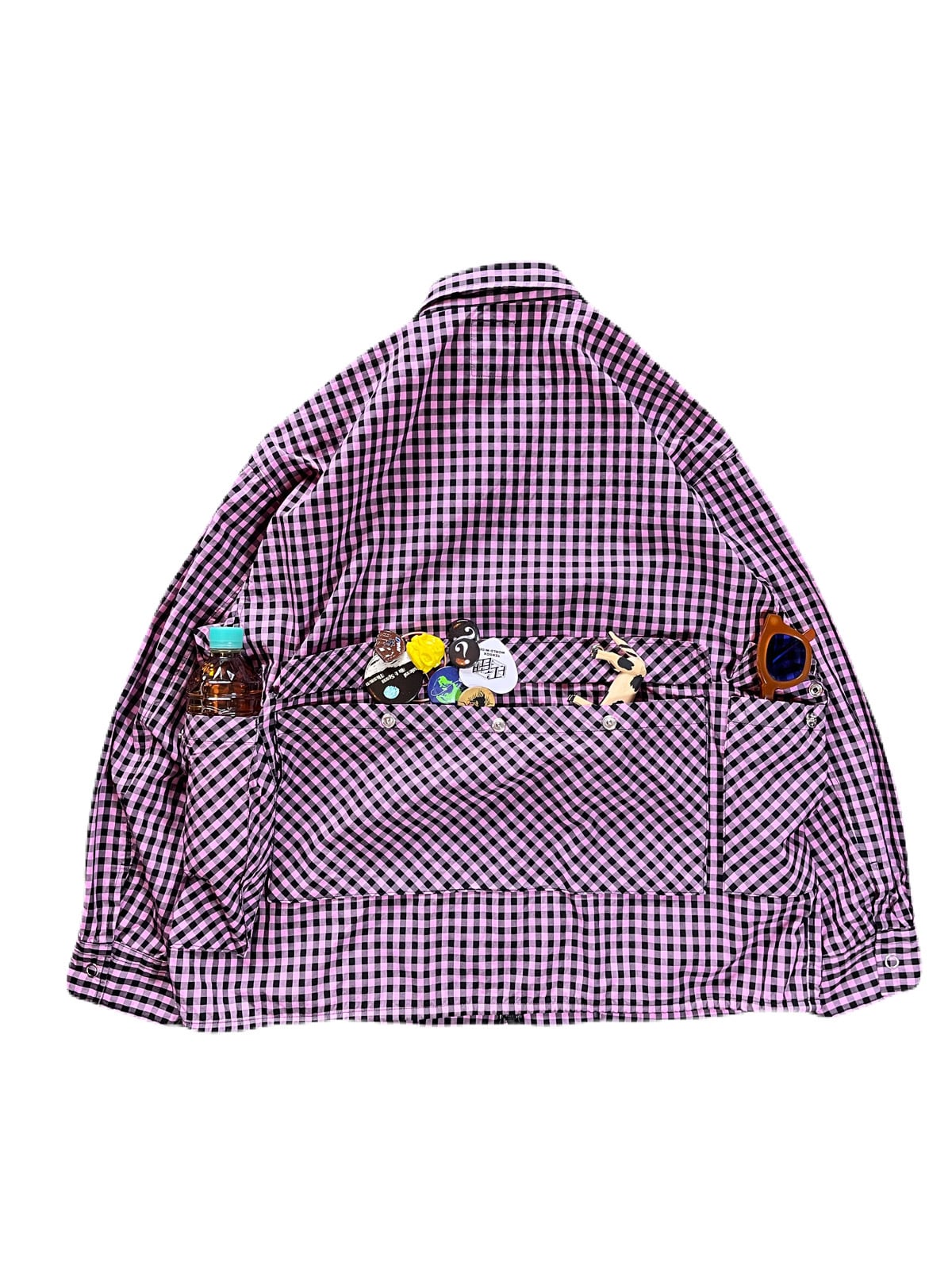 背中の大きなポケットは旅先でのスーベニアやライトアウターをしまう為のもの。