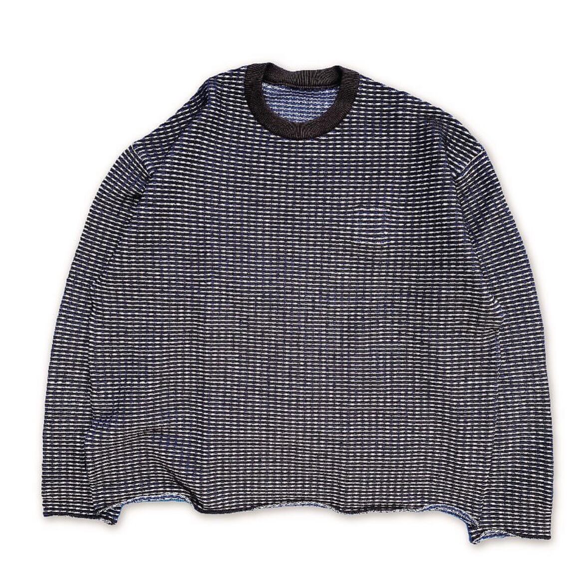 日本製の特殊な編み方により角度によって様々な色に変化して見えるカメレオンセーター