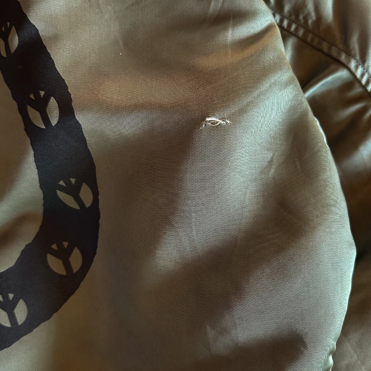 USEDアイテムの為、全体的にシミやほつれがございます。また、ZIPは閉まりますが開閉しづらくなっております。