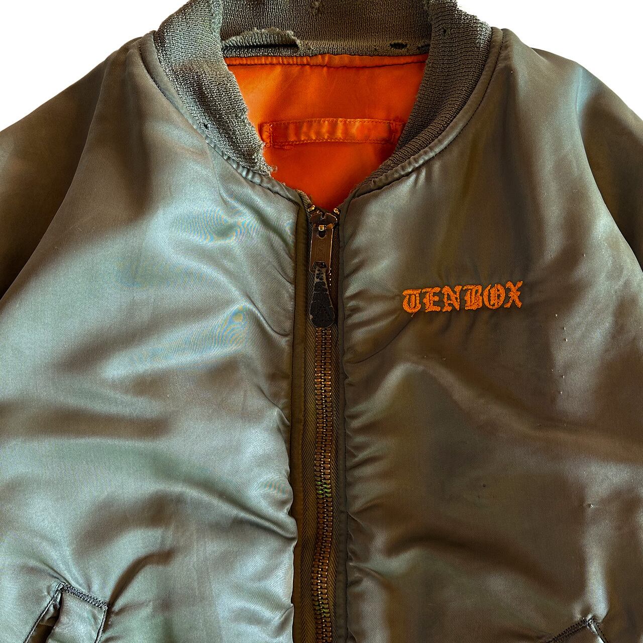 ALPHA INDUSTRIESの1965年製ヴィンテージMA-1に、TENBOXの刺繍とTENBOXオリジナルのPEACEマークのプリントを施しました。