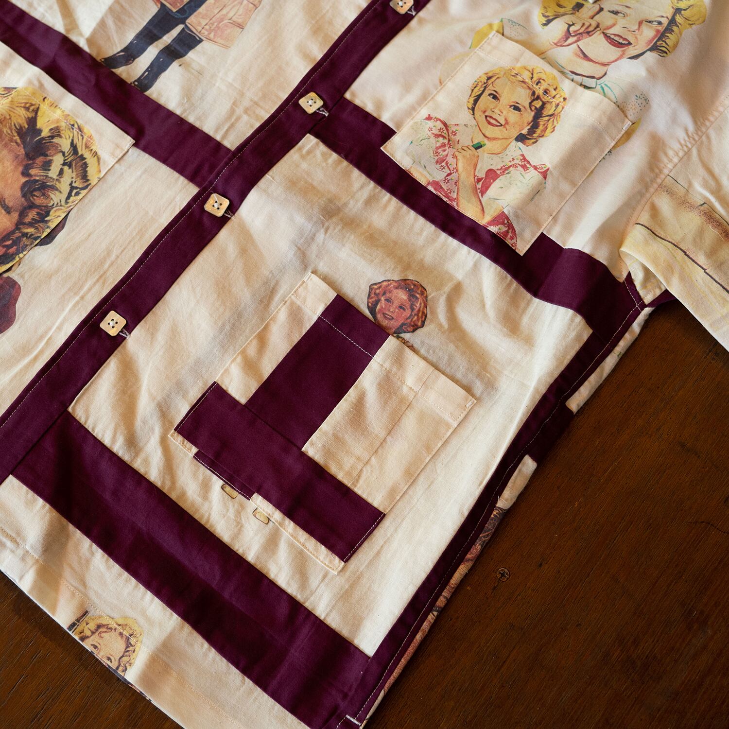 Vintageの生地と珍しい四角い貝ボタンを使用しています。