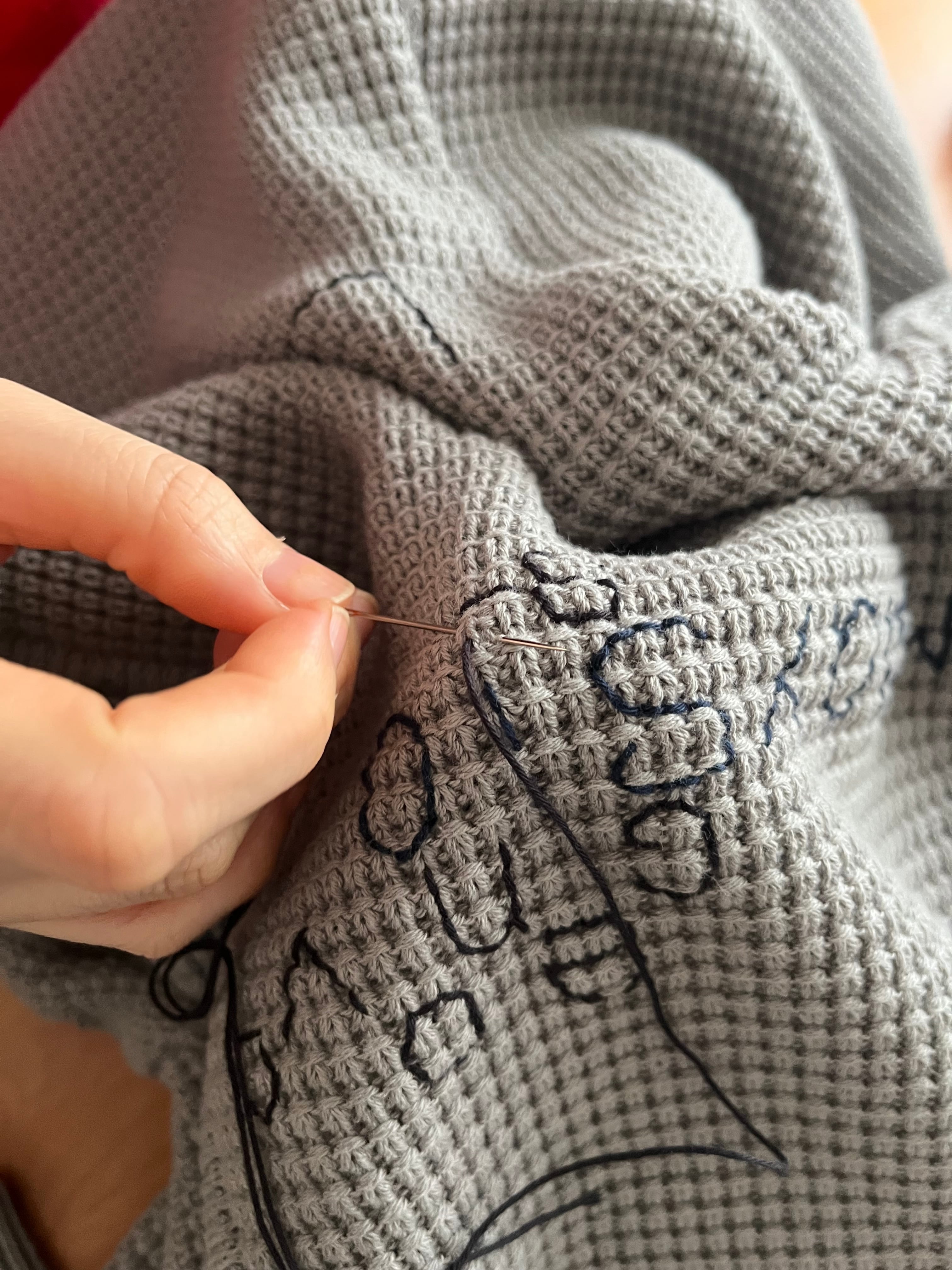 3本糸でしっかりと編み込まれたワッフルは型くずれしないです。